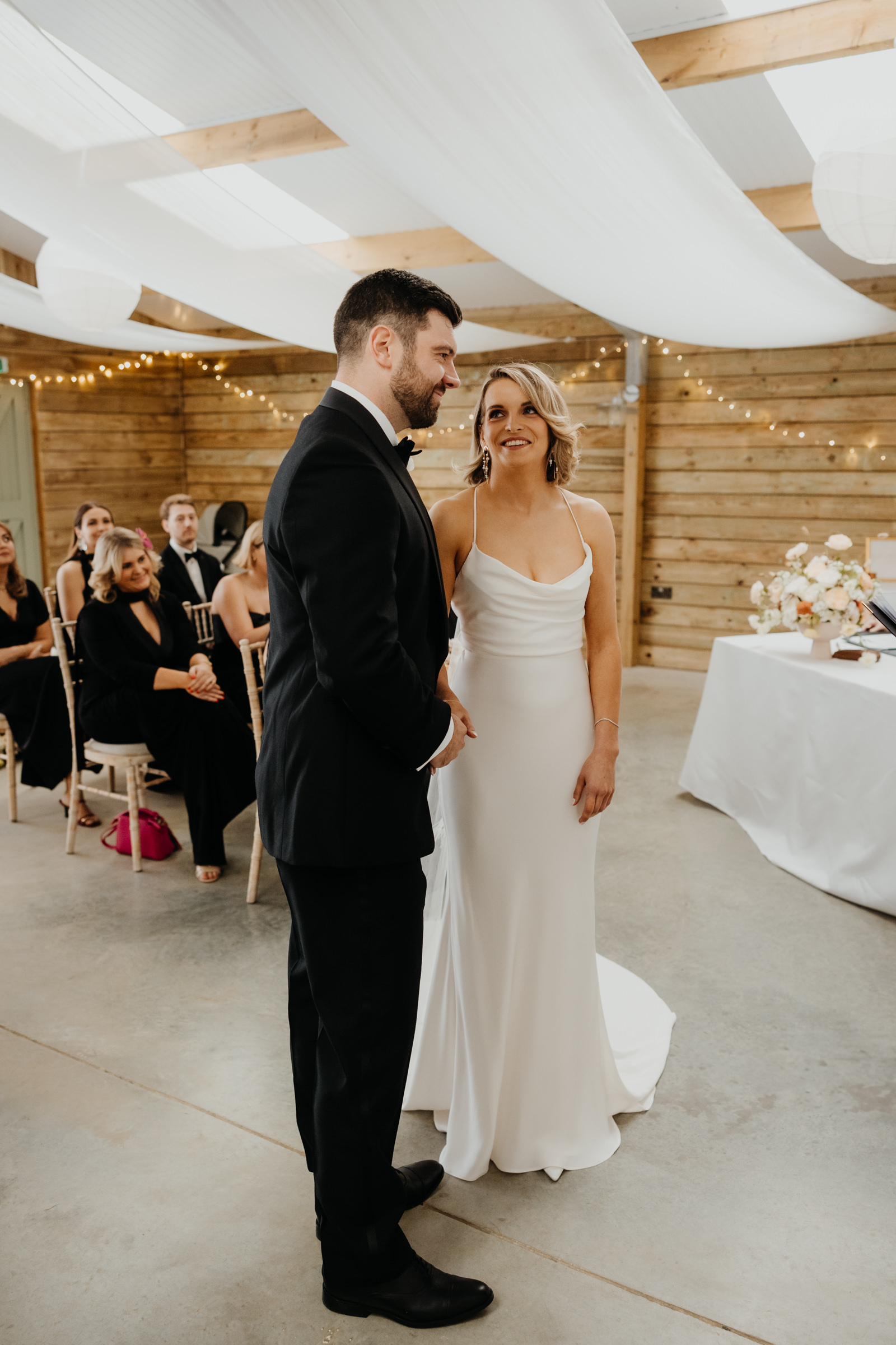 They chose to keep their ceremony beautifully intimate, inviting just their 20 nearest family and friends to witness their vows. It was heartfelt, personal, and deeply emotional – the sort of ceremony that makes you feel every single word. Later, the evening opened up to 60 more guests, transforming the barn into the ultimate party space. The dancefloor was alive all night, and it was impossible not to get swept up in the energy!
